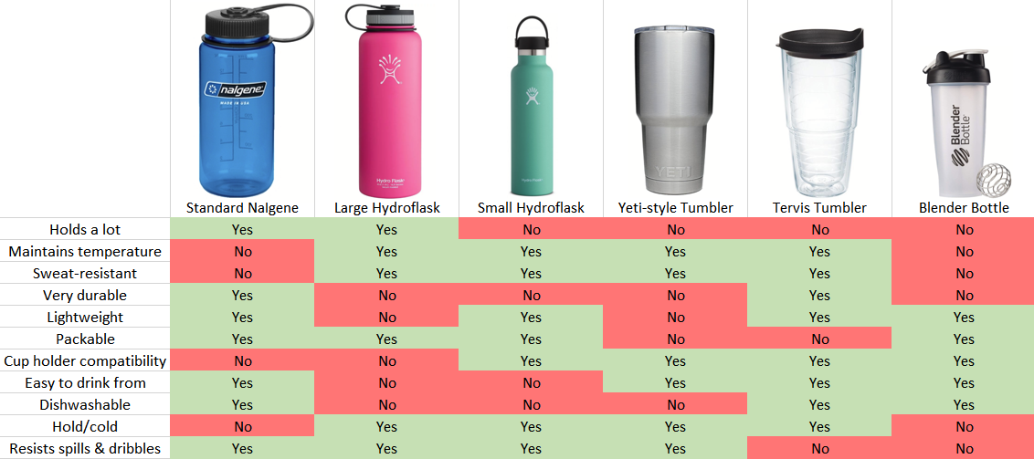 They are small enough to fit anywhere. They don’t sweat. They are very portable. They maintain temperature. They aren’t terribly heavy when full.