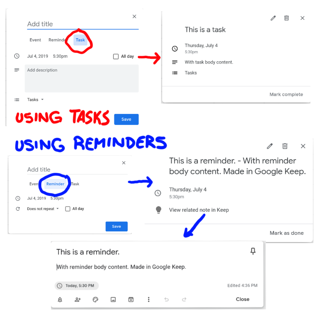 What is Google doing with Reminders? My memory isn’t perfect, but… When Inbox came out, Google introduced us to reminders. Reminders could be used for tasks, or literally just to remind you of something. Reminders were common between Google Inbox/Gmail, Google Keep, and Google Assistant… Then Google introduced a revamped Tasks app. These tasks were more purpose-built for tasks than reminders are… but they didn’t chose to integrate the two. They chose to maintain reminders and tasks separately. If you go to Google Calendar right now and click the FAB. See what options you get.