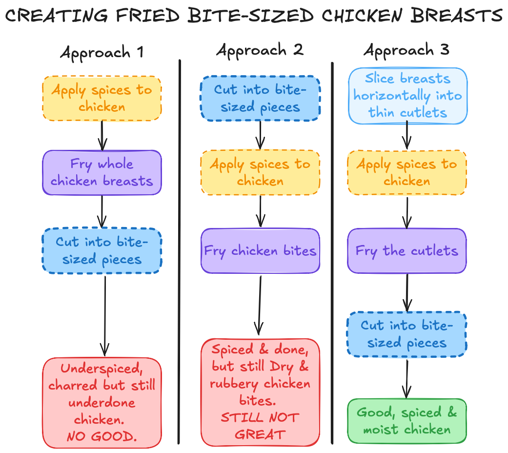 One thing I didn’t mention in my previous post about Default Meals - the “Default Meals spreadsheet” is a living document. As I make these meals I’m updating & improving my recipes and ingredients lists. Each time I make the meal I want it to be a little better than the last one. Already I’ve made a major change in nearly every meal by changing my approach to one very common thing: