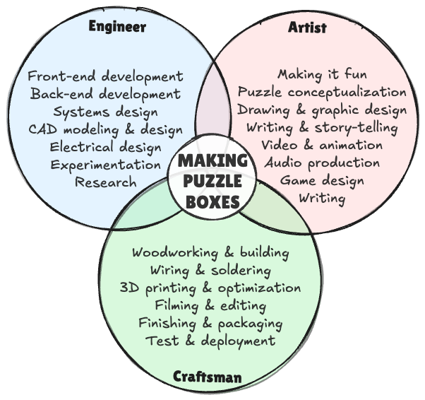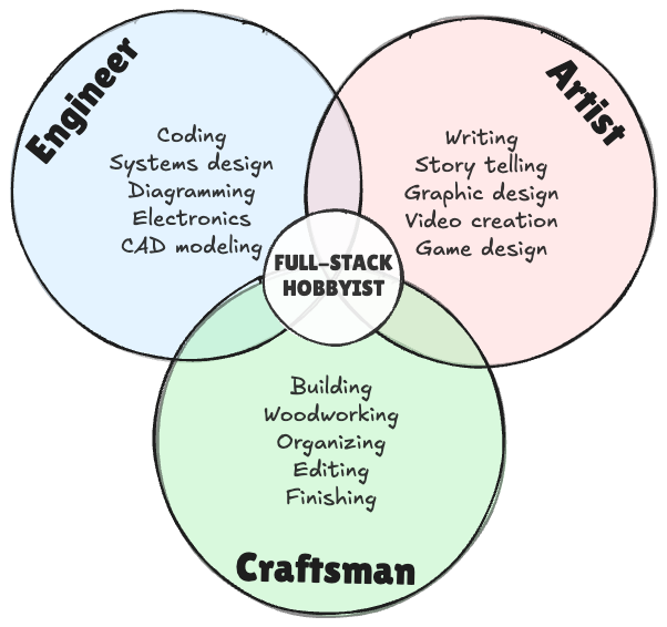 I made some pretty Venn Diagrams to illustrate my conceptualization of the “Full-Stack Hobbyist” & how Aaron’s Puzzles sits perfectly in the intersection of it all.