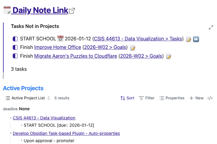 NOTE: to make this render properly I had to take out a backtick. The “tasks” query embed requires triple backticks in reality.